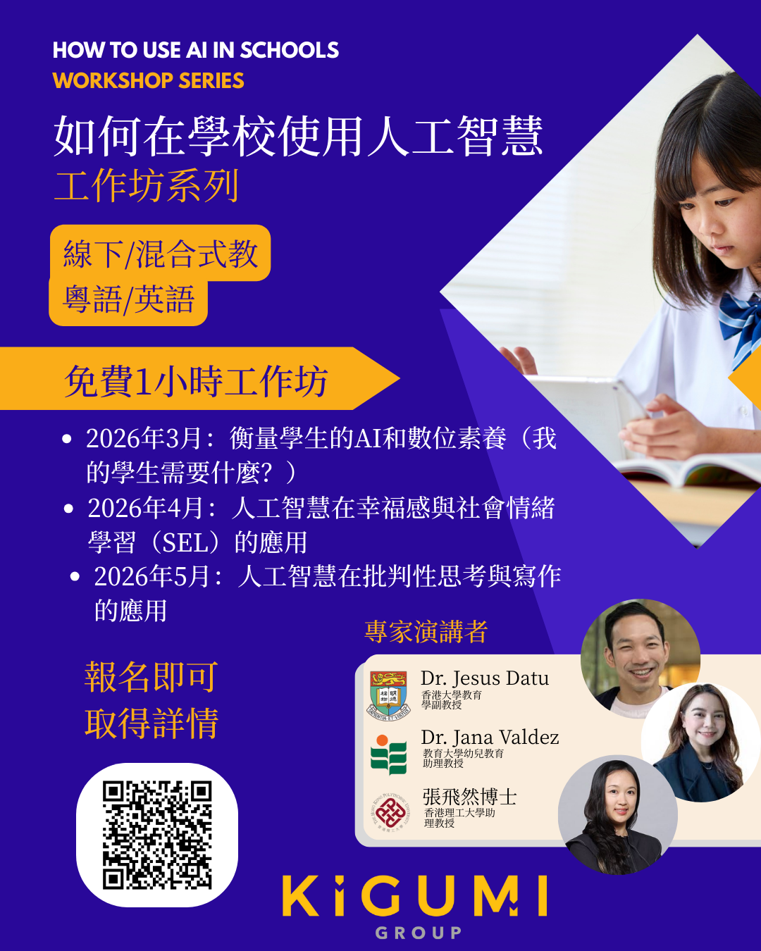 如果您是香港的學校領導或教師,想要了解如何在課堂上使用人工智慧來支持學生學習的各種令人興奮的方式,請註冊我們的免費研討會,聆聽本地大學教授講解人工智慧、批判性思維、社交情感學習等內容。
