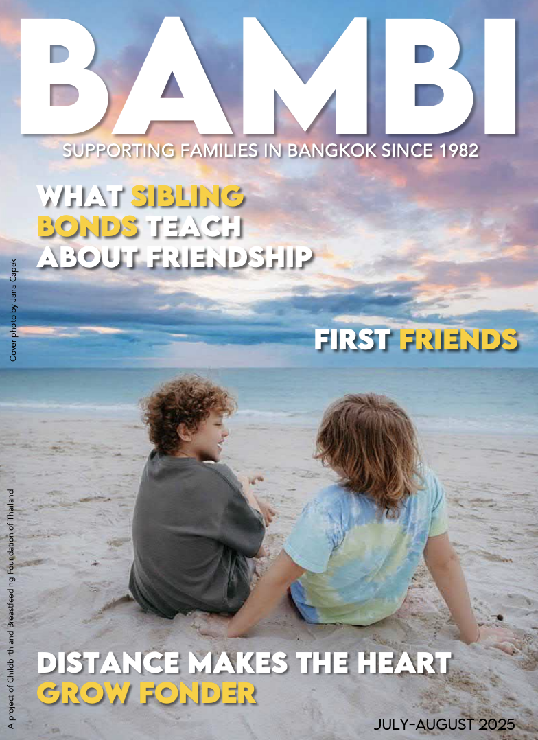 B.A.M.B.I. (Bangkok Mothers & Babies International) is a project of the Childbirth & Breastfeeding Foundation of Thailand (CBFT) and a non-profit organization run by volunteer parents that provides support and companionship for pregnant women and parents of young children of all nationalities in Bangkok, with a focus on promoting global, international ‘best practices’ to support healthy moms and babies.